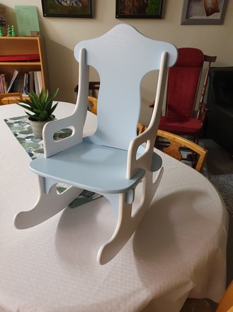 Keinutuoli lapselle, koivuvaneria, sivuosat valkeat, istuin ja selkänoja valintasi mukaan.