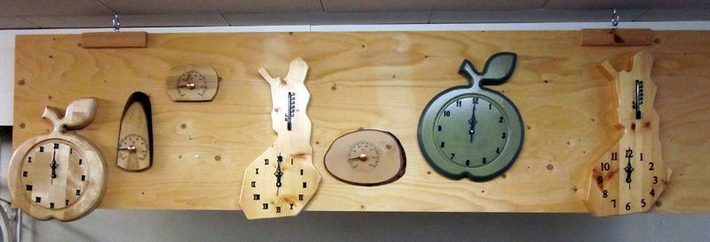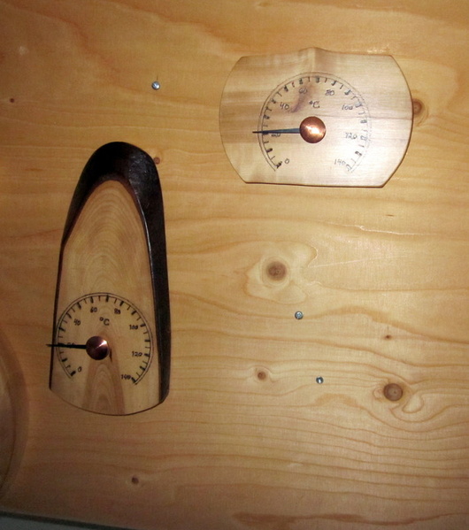 Kelloja sekä saunamittareita. (Klikkaa kuvaa nähdäksesi siitä suurennoksen).
