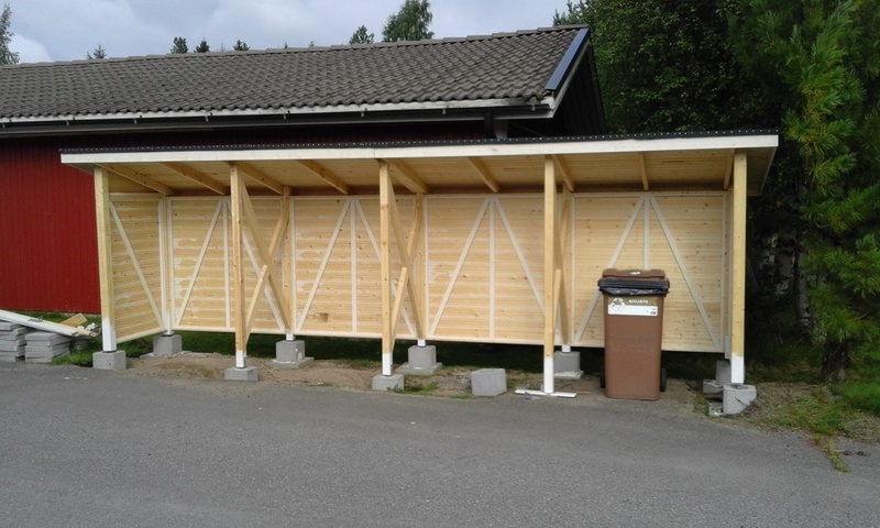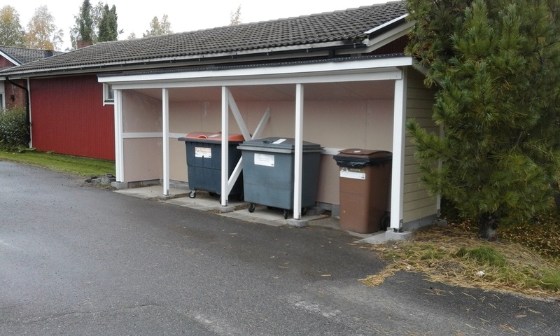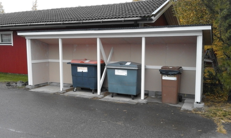 Elementtivalmisteiset jäte-/roskakatokset: Tilattavissa. Saatavana myös kyllästetty alusta (lattia) lisähintaan.