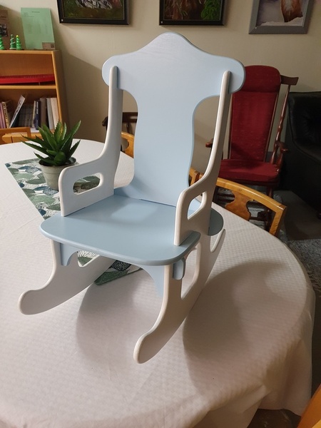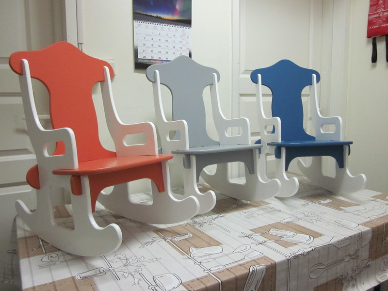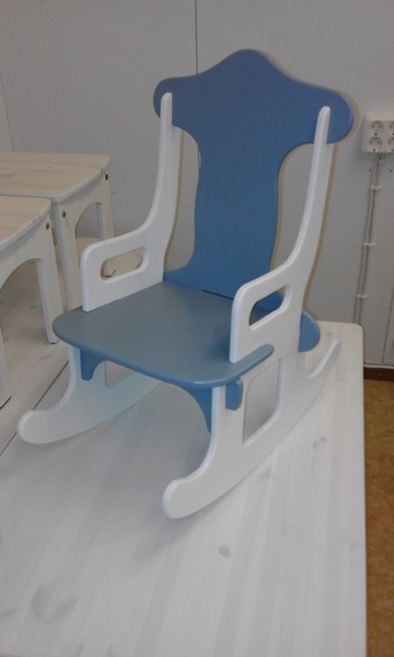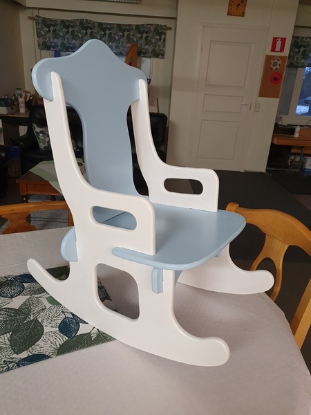 Keinutuoli lapselle, koivuvaneria, sivuosat valkeat, istuin ja selkänoja valintasi mukaan.