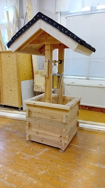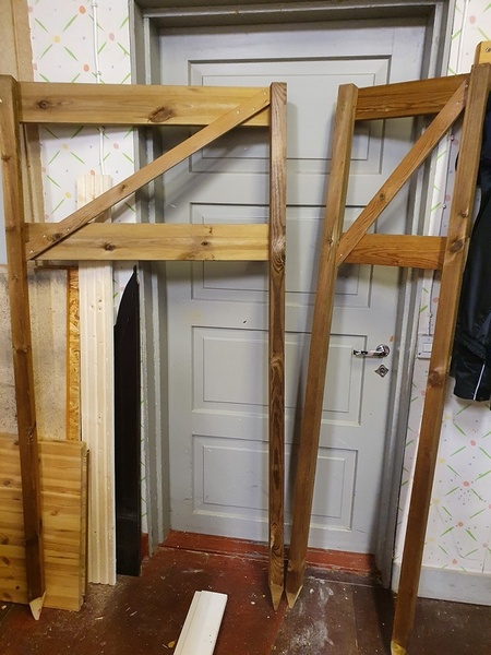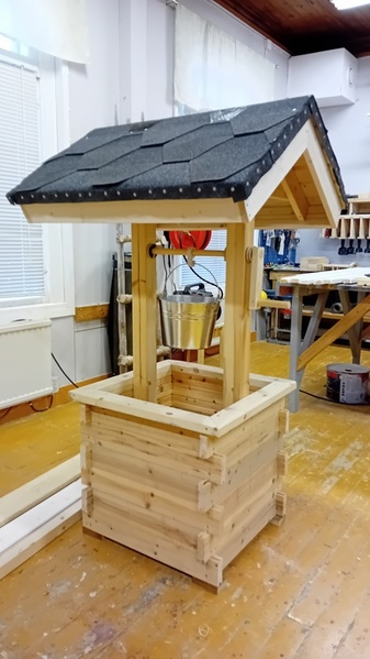 Mäntypuusta+pinnoitus, hinta 550 €.