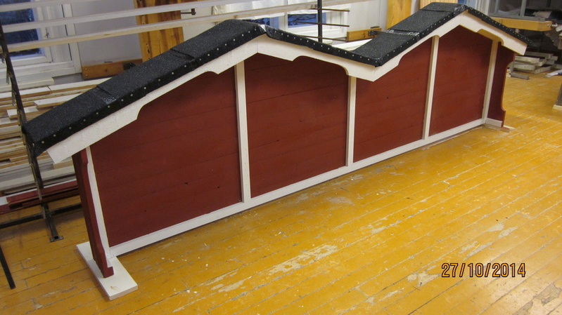 Toimitus sisältää osittain pohjamaalatut seinäelementit, palahuopapäällysteisen kattoelementin ja ovet heloineen sekä kokoonpanoon tarvittavat kiinnitystarvikkeet.