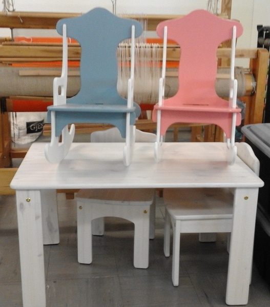 ![]() | ![]() Lasten keinu, väri valinnan mukaan, hinta 45 €. Lasten pöytäkalusto (pöytä ja kaksi tuolia, valkoisena, hinta 120 € |